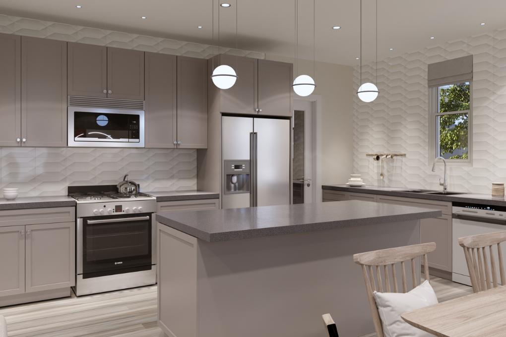 迷人的户型3 是一栋三层独栋,面积2,209 平方尺。一楼是宽敞的卧室、步入式衣橱和独立浴室。二楼的美食厨房提供步入式储藏室、双水槽和中央岛。设计包括宽敞的餐厅、客厅和阳台。厨房有全覆盖无框平板现代枫木橱柜、花岗岩平板台面和 6 英寸后挡板,以及 GE 不锈钢优质厨房电器。 顶层包括两间卧室、浴室、洗衣房和宽敞的主套房。主卧设有带步入式淋浴间和独立式浴缸的水疗式浴室。浴室配有宽敞的步入式衣橱。